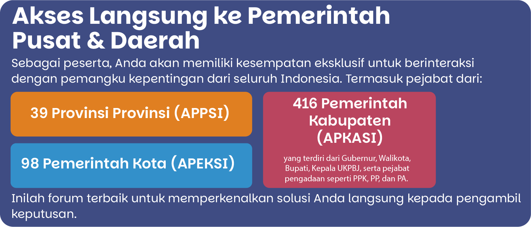 Mengusung format pameran, seminar, temu bisnis, workshop, bimbingan teknis, hingga sertifikasi, ICEF - IPFE 2025 menghadirkan ruang temu lintas pemangku kepentingan—dari kementerian, lembaga, pemda, hingga sektor swasta. Kolaborasi ini membuka akses langsung bagi pelaku usaha untuk terhubung dengan pasar belanja pemerintah bernilai triliunan rupiah dan memperkuat kemitraan menuju ekosistem pengadaan yang inklusif dan berkelanjutan, sejalan dengan visi Indonesia Emas 2045.